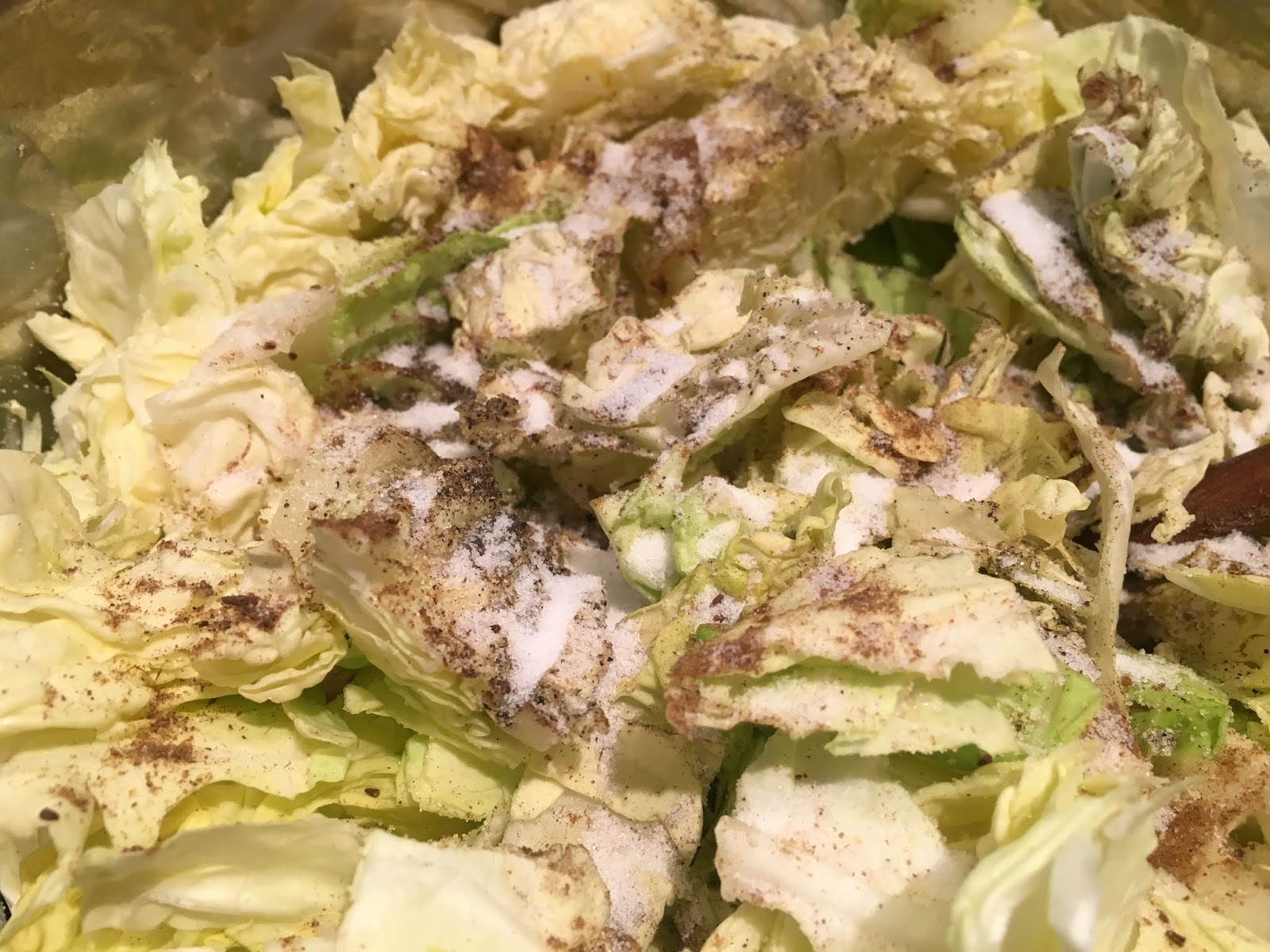 Sózzuk, borsozzuk és őrölt köménnyel ízesítjük.