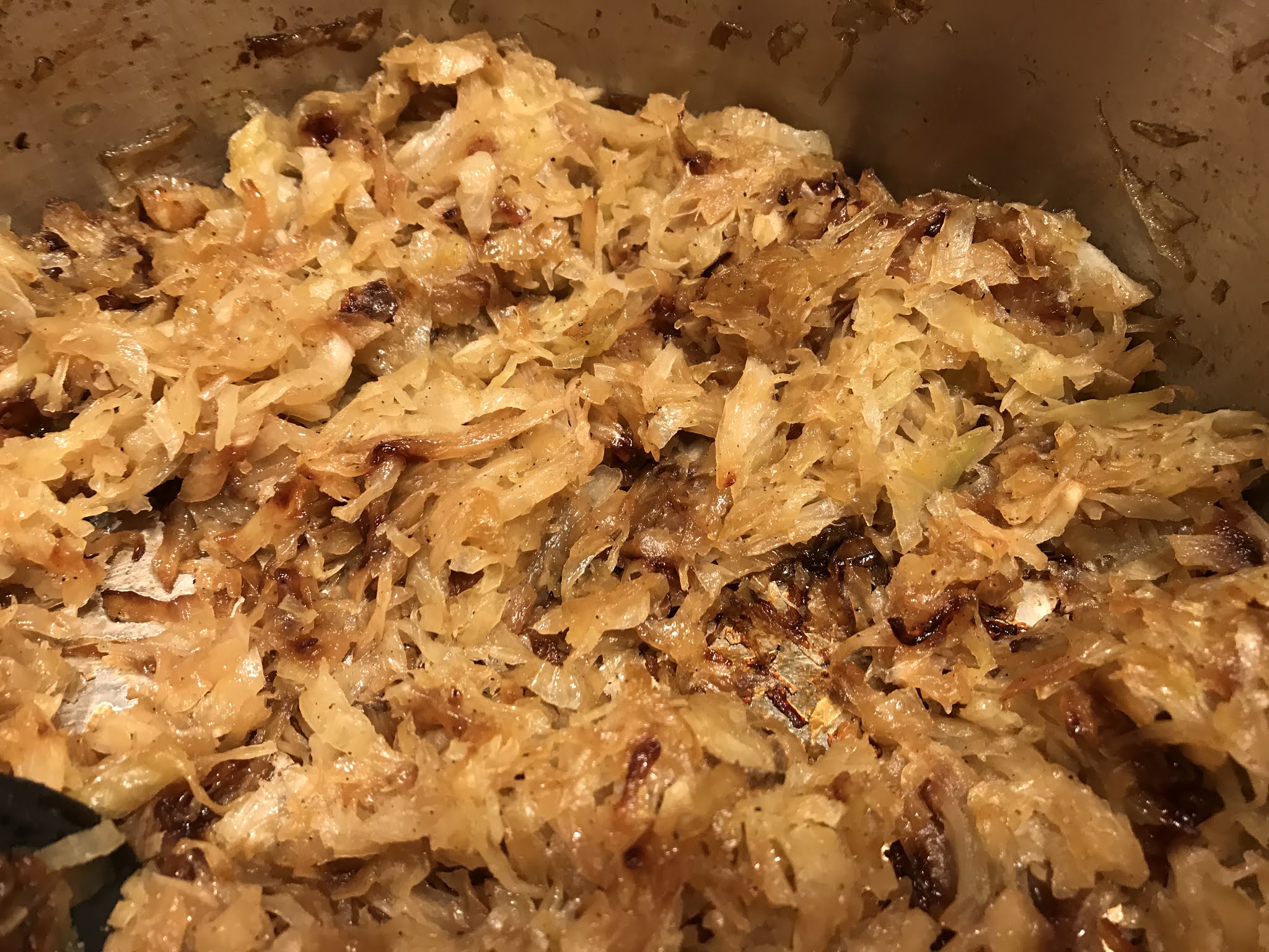A lereszelt káposztát úgy pirítjuk meg mintha káposztás tésztát készítenénk.